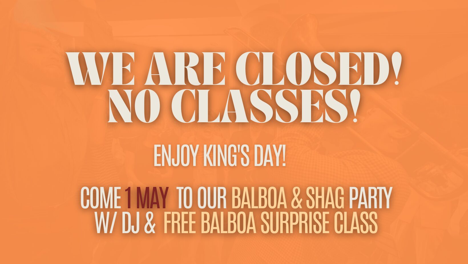 We are closed today! Enjoy King’s Day & come 1 May to our Balboa & Shag Party!
